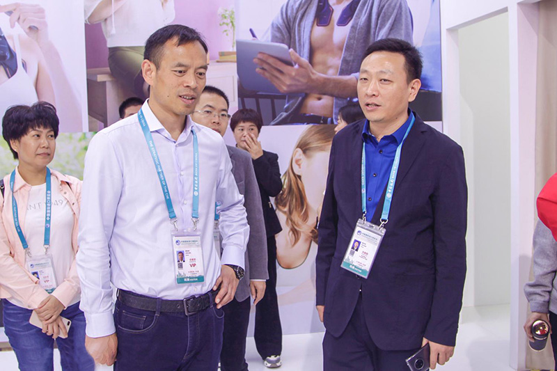▲長(zhǎng)垣市委書記秦保建與董事長(zhǎng)魏學(xué)明在進(jìn)博會(huì)現(xiàn)場(chǎng)交流