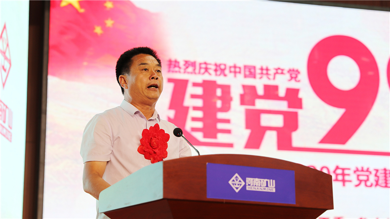 河南礦山黨委書(shū)記兼參木社區(qū)黨委書(shū)記崔培軍致辭。他說(shuō),河南礦山自2002年成立黨支部以來(lái),始終堅(jiān)持聽(tīng)黨話,跟黨走,堅(jiān)決執(zhí)行黨的路線方針政策,加強(qiáng)服務(wù)型黨組織建設(shè),踐行“三心”“六最”企業(yè)文化理念,在企業(yè)發(fā)展和服務(wù)群眾工作中,發(fā)揮黨的先鋒模范帶頭作用,提高員工的思想道德素質(zhì)和業(yè)務(wù)能力,發(fā)揮員工的創(chuàng)造力,推動(dòng)企業(yè)快速發(fā)展,在美麗鄉(xiāng)村建設(shè)、農(nóng)村兩個(gè)精神文明建設(shè)中發(fā)揮帶頭作用。