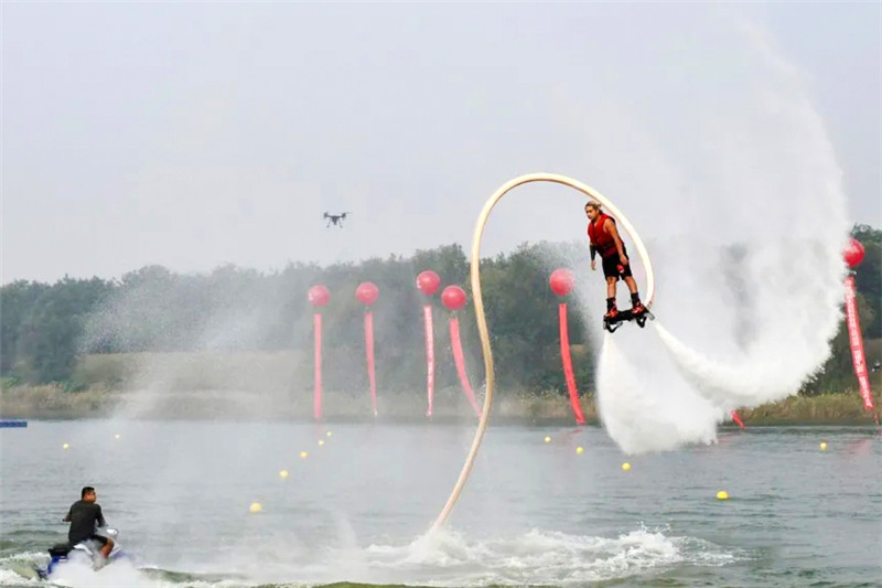 大賽開幕式增加了水上特技、舞獅等精彩刺激又突出體育運(yùn)動(dòng)元素的演出,其中水上飛人項(xiàng)目贏得在場嘉賓和觀眾陣陣喝彩。