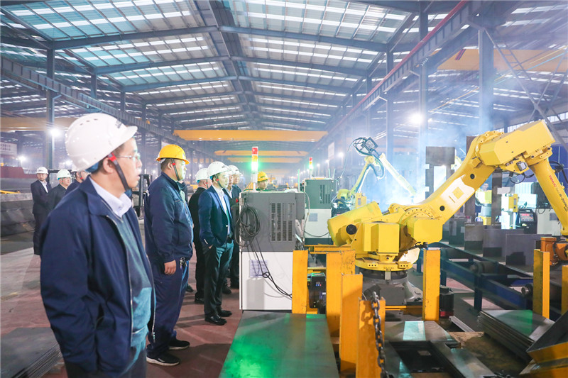 ▲韓珍堂一行考察公司智能產(chǎn)業(yè)園雙梁主梁智能制造生產(chǎn)線