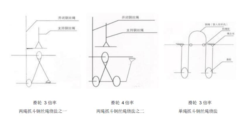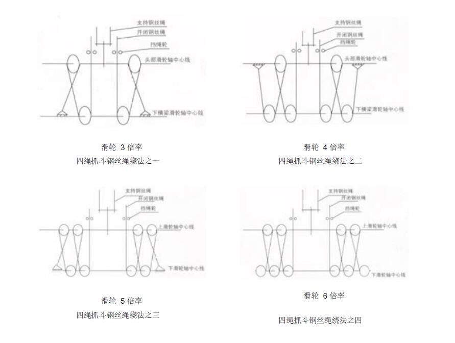雙繩抓斗和四繩抓斗的鋼絲繩繞法圖解